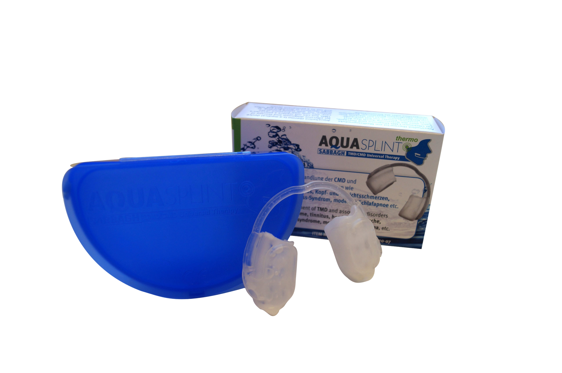 De AquaSplint “Thermo” is een zelfregulerende, aanpasbare geprefabriceerde TMD spalk die in een paar minuten kan worden gebruikt zonder laboratoriumwerk, afdrukken of registratie. De splint bestaat uit twee water pads die met elkaar verbonden zijn middels een buis (hydrostatische water balans). Door de splint in 80 graden celsius te doen wordt de toplaag zacht zodat deze zich kan vormen naar de tanden van de patiënt. Een dergelijke individualisering maakt onmiddellijke optimale stabiliteit en comfort en – in tegenstelling tot conventionele harde beet spalken en biedt de volgende voordelen: