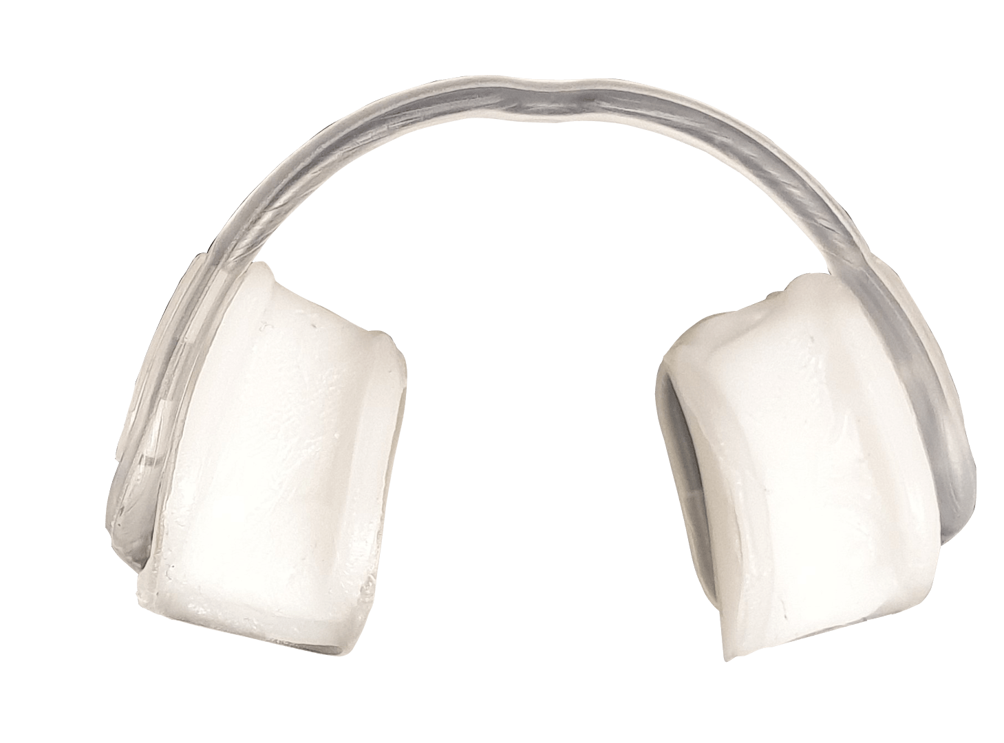 - vervangt de ontspanning en afleiding spalk (geen hogere compressie in het gewricht in tegenstelling tot spalken met frontaal beet stuk / plattegrond)