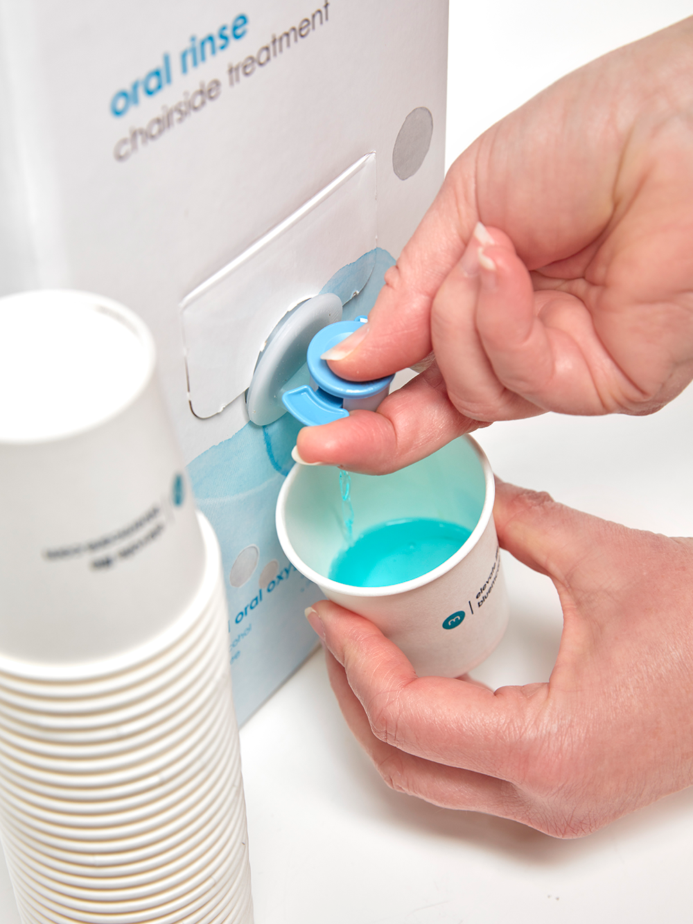 De blue®m mondwater dispenser is de perfecte mondspoeling voor behandeling aan de stoel. Het mondwater is fris en bevat geen alcohol of fluoride. Alcohol kan een droog gevoel in de mond geven waardoor je een vieze smaak krijgt. Daarom hebben we besloten om geen alcohol te gebruiken in onze producten. Fluoride kan implantaten beschadigen. Om ervoor te zorgen dat iedereen ons mondwater kan gebruiken, hebben we ook besloten om de fluoride over te slaan. Perfect voor behandeling bij Parodontitis - Gingivitis - Peri-Implantitis - Implantaatchirurgie - Halitose en meer.