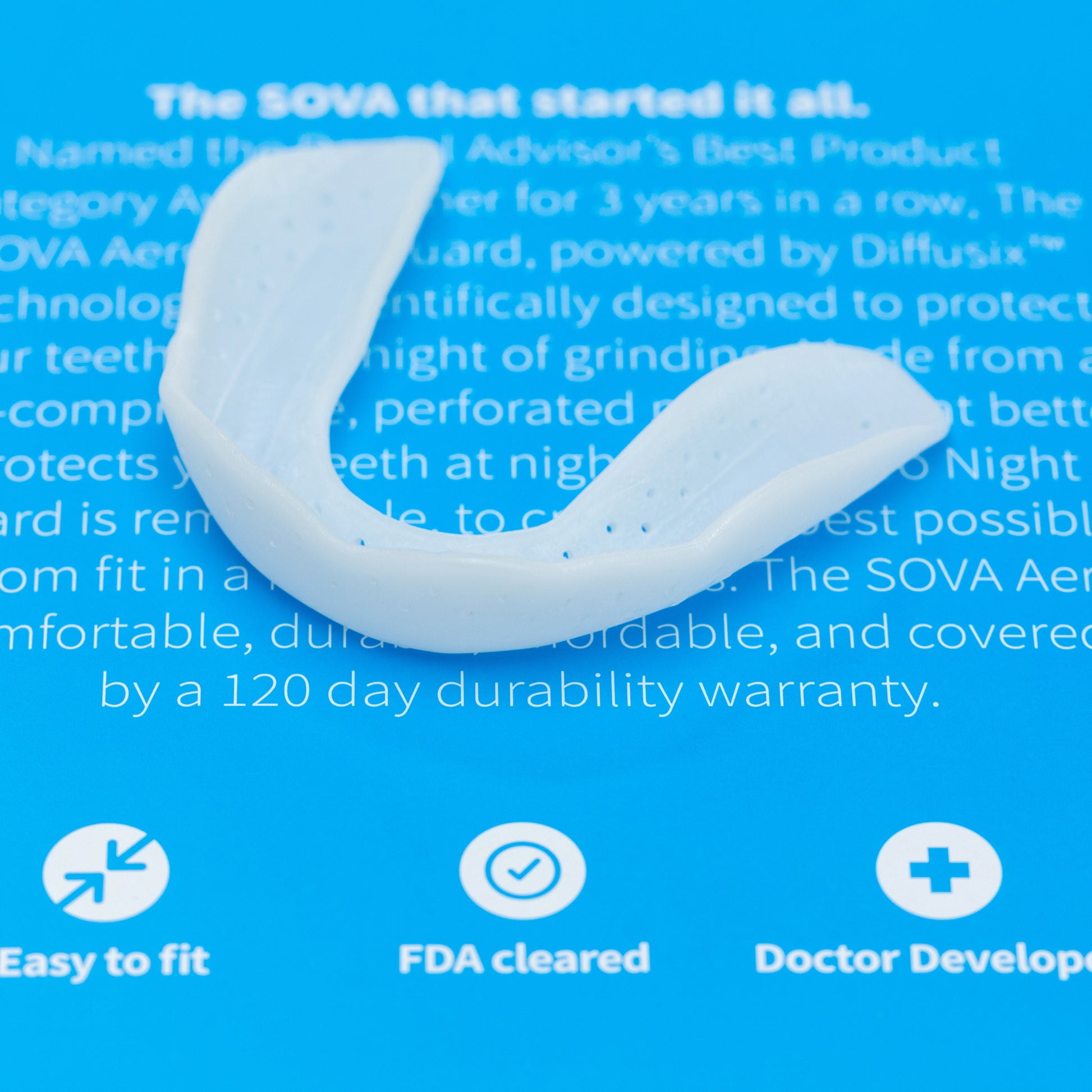 De SOVA Night Guard is een splint welke is ontworpen om snel en eenvoudig bij een patiënt te plaatsen. Doordat de splint is gemaakt van een hard polymeer materiaal met een plat occlusaal oppervlak en een uniek ontwerp kan de splint veel kracht verduren. Het thermoplastische materiaal heeft daarbij een hoge treksterkte en is biocompatibel en BPA-vrij. De splint kan door middel van onderdompeling in 60° water plooibaar worden gemaakt en worden aangepast aan het gebit van de patiënt. In tegenstelling tot andere splints kan dit meerdere keren herhaald worden. Hierdoor kan men dus de splint dusdanig aanpassen om naar een perfecte eindsituatie te werken. De SOVA Night Guard is te verkrijgen in diverse diktes zodat u voor iedere casus een geschikte Night Guard kan maken. Middels het maatwerk wat wordt geleverd met het passen wordt het dragen van de splint als comfortabel ervaren.