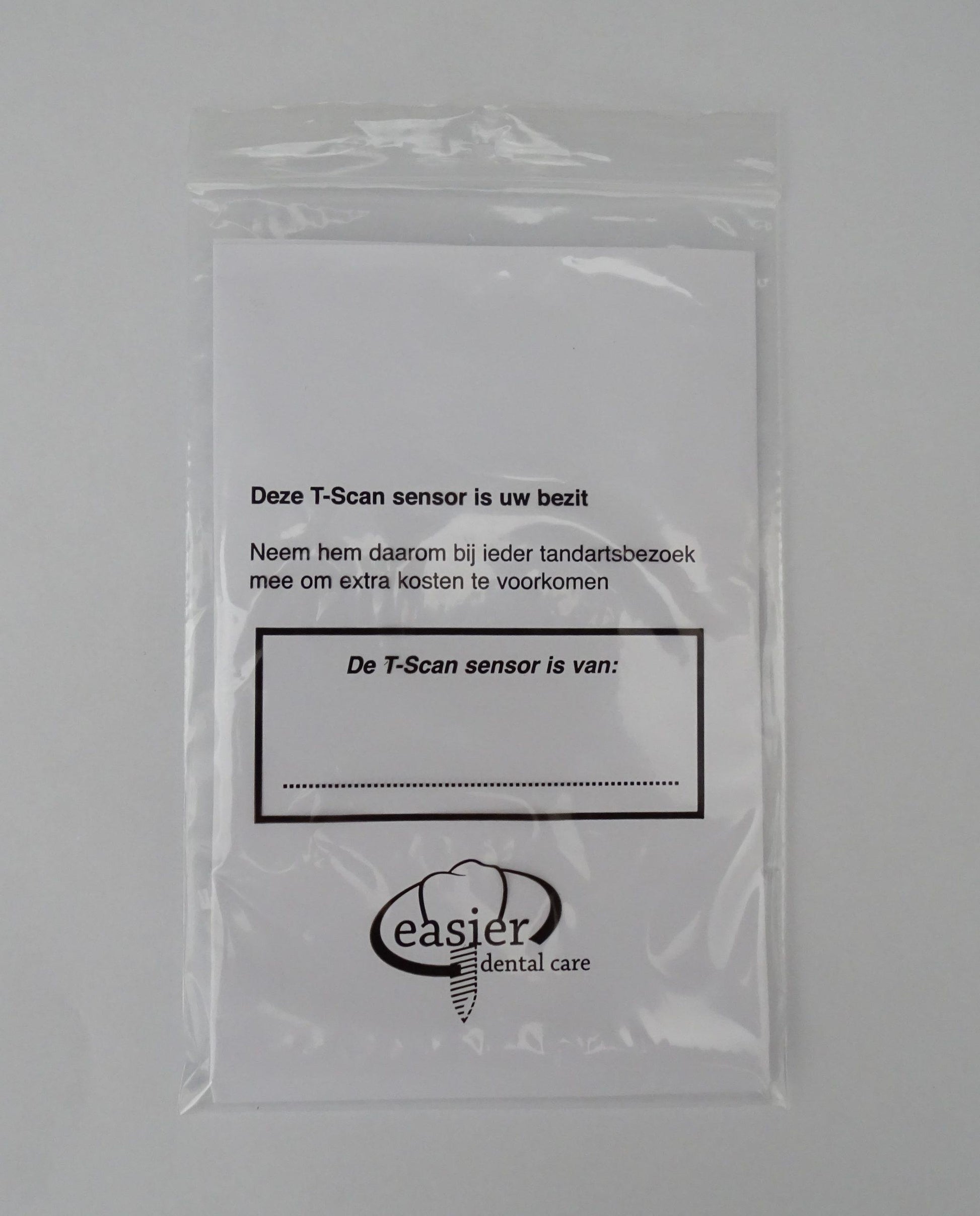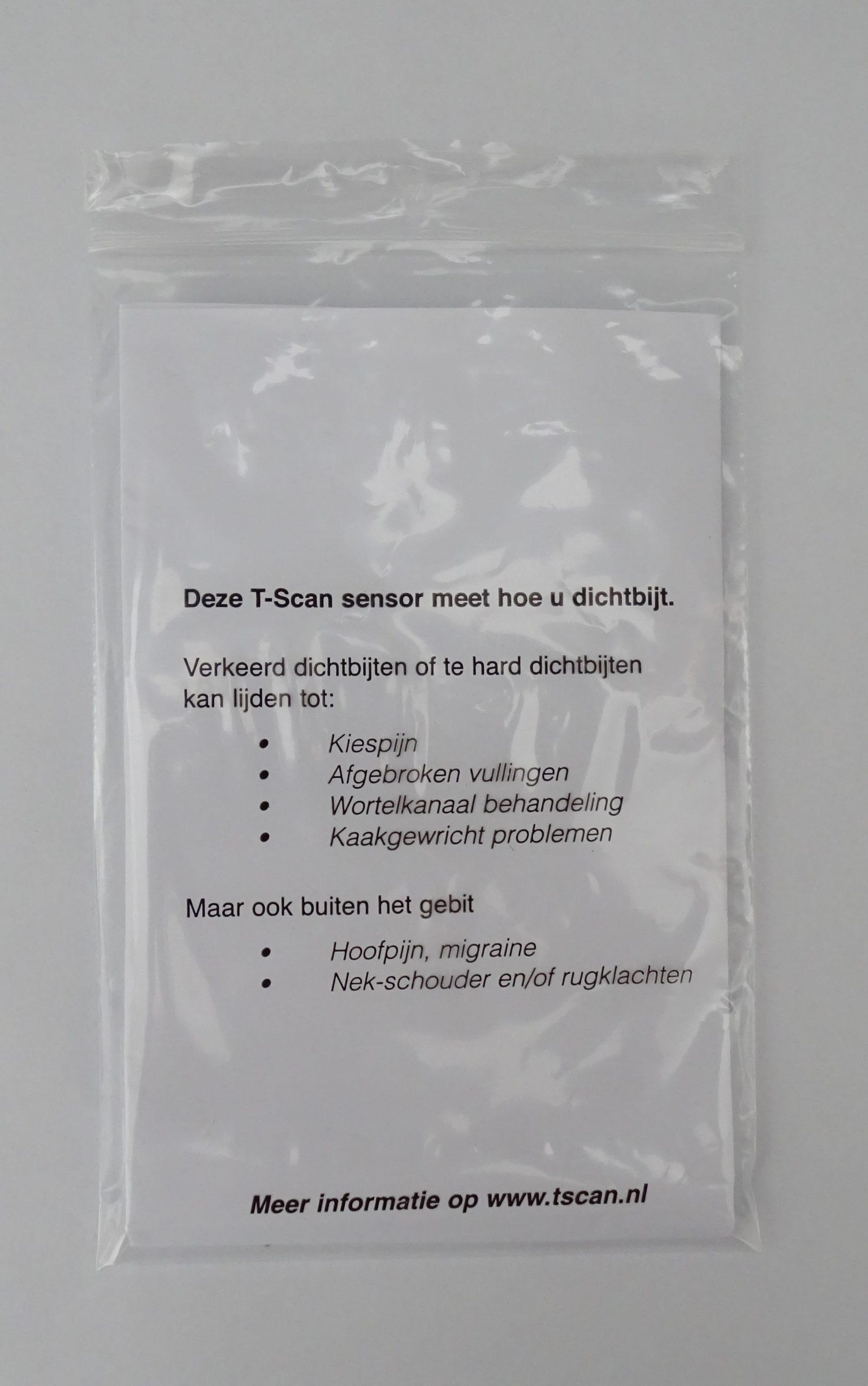 Met deze handige bewaar bags kunt u de T-Scan sensor meegeven aan uw patiënt.